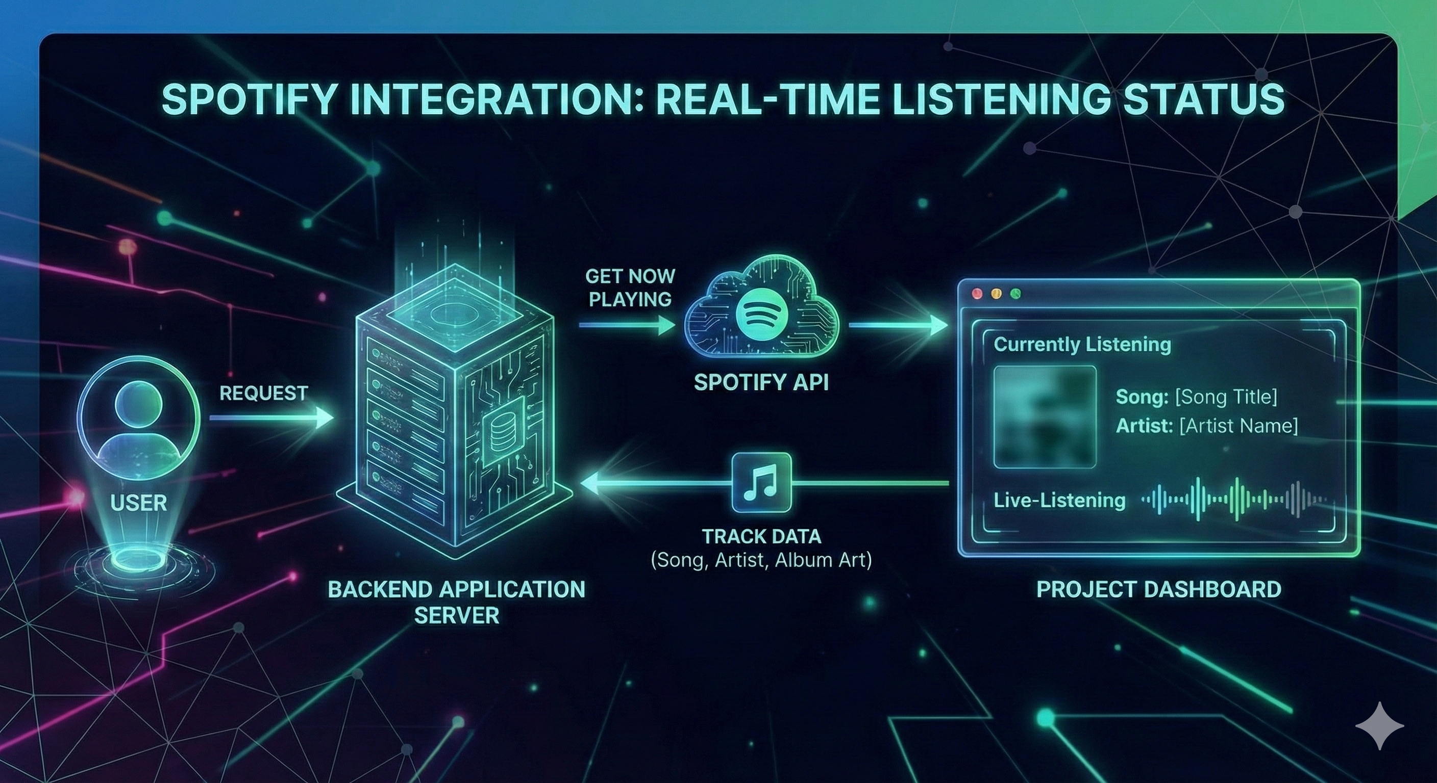 A live Spotify integration that shows the track currently listening to in real time. calls the Spotify Web API, and updates the UI with the song title, artist, album art, and a dynamic background that adapts to the cover art.